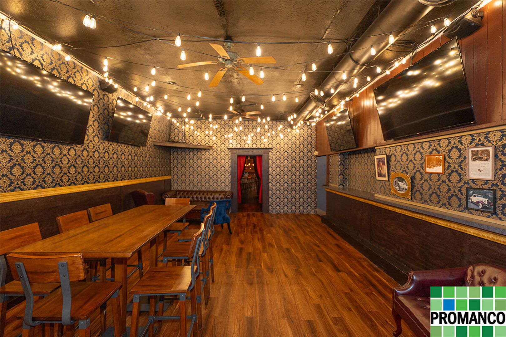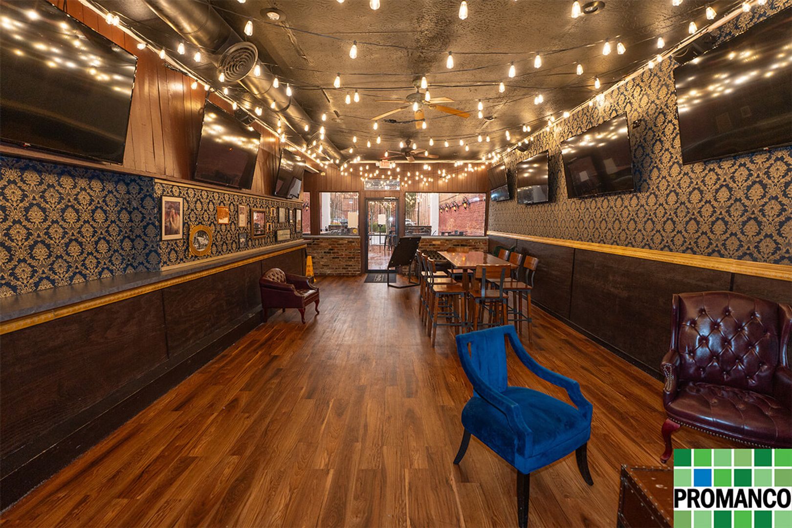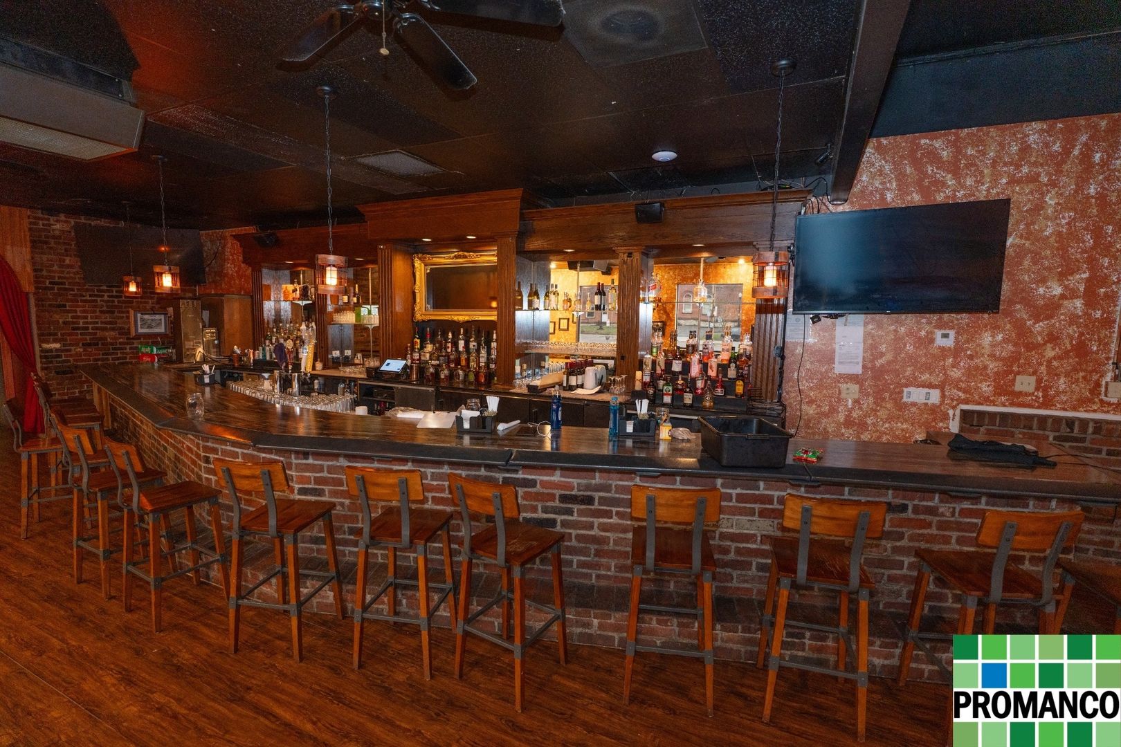 The space features a fully operational kitchen, including a walk-in cooler, commercial-grade appliances, and ample prep areas. The expansive full-service bar and lounge-style seating area are ready to welcome guests, enhanced by a professionally installed sound system and seven wall-mounted TVs - exactly what you need for sports, music, or media-driven dining experiences.